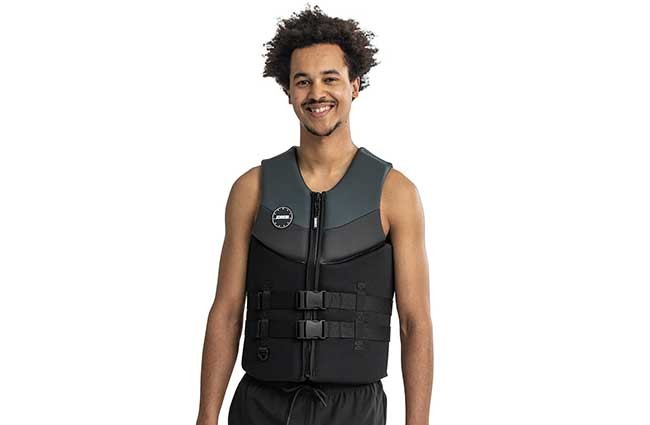 Vesta de neopren Jobe pentru barbati este realizata dintr-un neopren, moale si confortabil. Aceasta vesta este echipata cu un fermoar frontal YKK, catarame YKK puternice, curele reglabile. Un cablu de urgenta poate fi atasat la inelul D din partea din fata a vestei. Panourile umplute cu spuma moale din PVC stabilesc un nou standard pentru industrie și reprezinta un avantaj pentru a va putea bucura de sporturile pe apa in conditii de confort sporit. Vesta beneficiaza de aprobarea CE conform Certificatului ISO 50N (ajutor de flotabilitate), super moale, flexibila si confortabila.