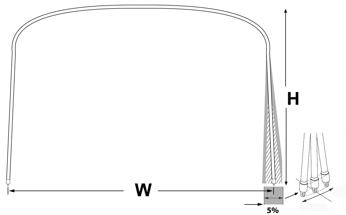 Durabila, oferă protecție absolută împotriva soarelui. Ramele sale sunt realizate din oțel inoxidabil AISI316 cu diametrul de 22 mm.